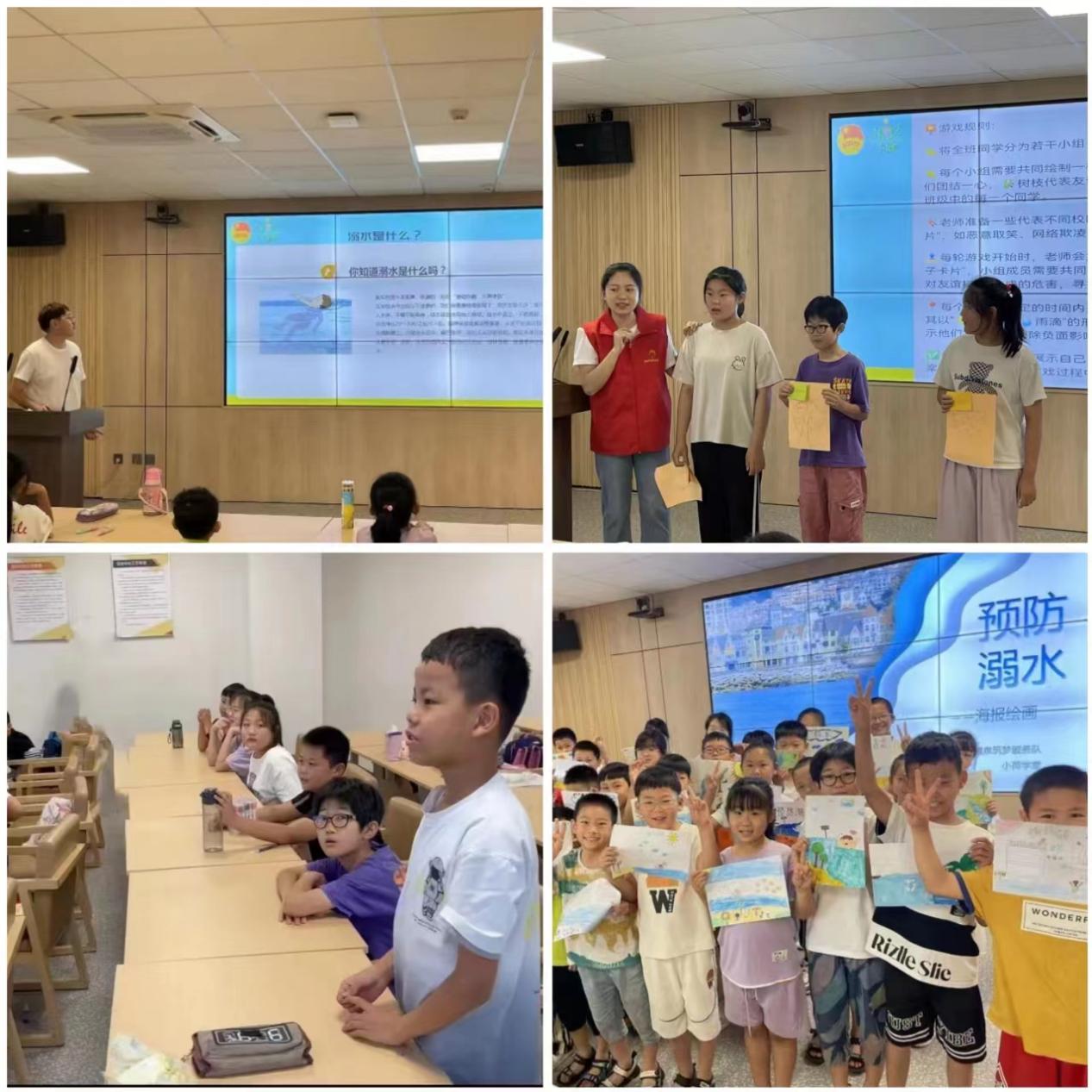 曦泉筑梦服务队开设“防溺水”“暑期青少年防校园暴力”主题教育课程,引领学生了解并掌握防溺水的知识和技能,认识到校园暴力的危害,为学生的身心健康和稳定发展奠定基础。通过志愿者的讲解与PPT演示,学生们懂得了如何预防各种危险,学会了自护自救的方法。学生们还积极展示了自己设计的防溺水海报,在“我想对‘你’说”活动上真诚表达了对校园施暴者和受暴者、旁观者想说的话。通过对安全教育特色课程的学习,学生们明白生命是唯一的、宝贵的,必须筑起思想、行为和生命的安全长城,也明白了同学之间应互帮互助、互相团结。
