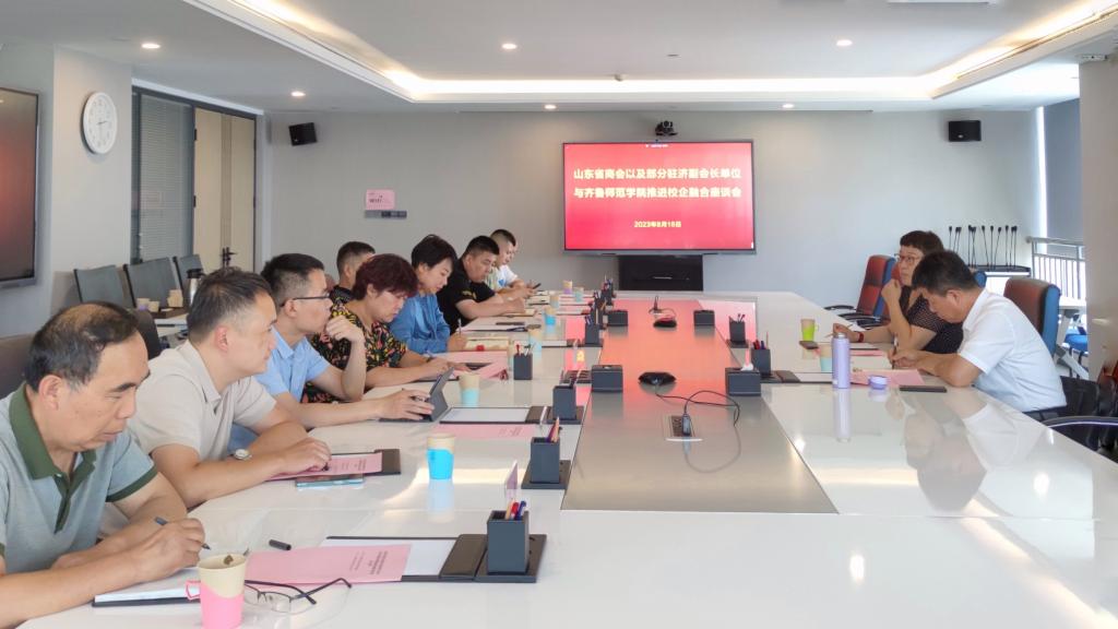 为积极拓展校企合作资源,进一步深化产教融合,探索校企合作新模式新思路,8月16日,齐鲁师范学院与山东省商会以及部分驻济副会长单位举行推进校企融合座谈会。齐鲁师范学院合作发展办公室主任刘勇、经济与管理学院院长周健,山东省商会秘书长赵萍、山东省商会专家徐建国以及部分驻济副会长单位负责人参加会议。