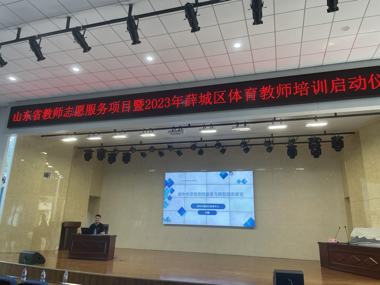 本次志愿者服务项目,齐鲁师范学院特邀体育特级教师和体育学院部分优秀教师组成师资团队。会上由济南市槐荫区初中体育教研员、特级教师刘鹏作《初中体育信息赋能学习模型探索研究》主题报告,该报告通过信息化赋能体育教学,使学生能够更好地建立动作表象,提升认知,更是为体育教育科研指出了方向。在足球教学方面齐鲁师范学院体育学院副教授王欣进行足球教学的指导,他表示,将重点围绕足球教学的基本功、规范动作、技术战术等方面展开培训,助力薛城区足球教学水平提升。