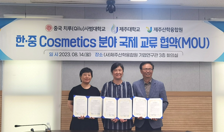 随后,曹晓荣一行参观了济州产学融合院化妆品生产基地、济州大学的皮肤研究中心和化妆品实验室。