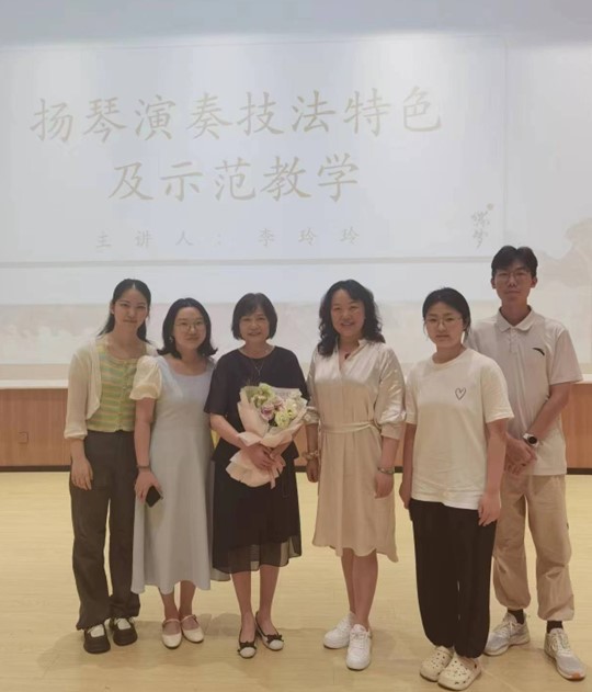8月20日,万梅红带领参赛师生共同聆听学习了李玲玲《扬琴技法特色及示范教学》专题讲座。