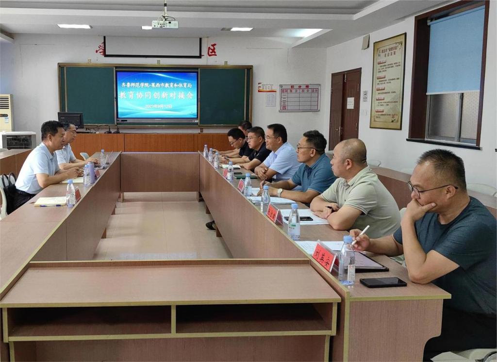 为积极做好齐鲁师范学院服务山东基础教育工作,主动对接各县区教育资源,9月12日,齐鲁师范学院合作发展办公室主任刘勇、教师教育学院院长毕诗文一行赴莱西市教育和体育局对接合作,莱西市教育和体育局副局长周忠波、副局长郭军,及相关科室负责人参加座谈。