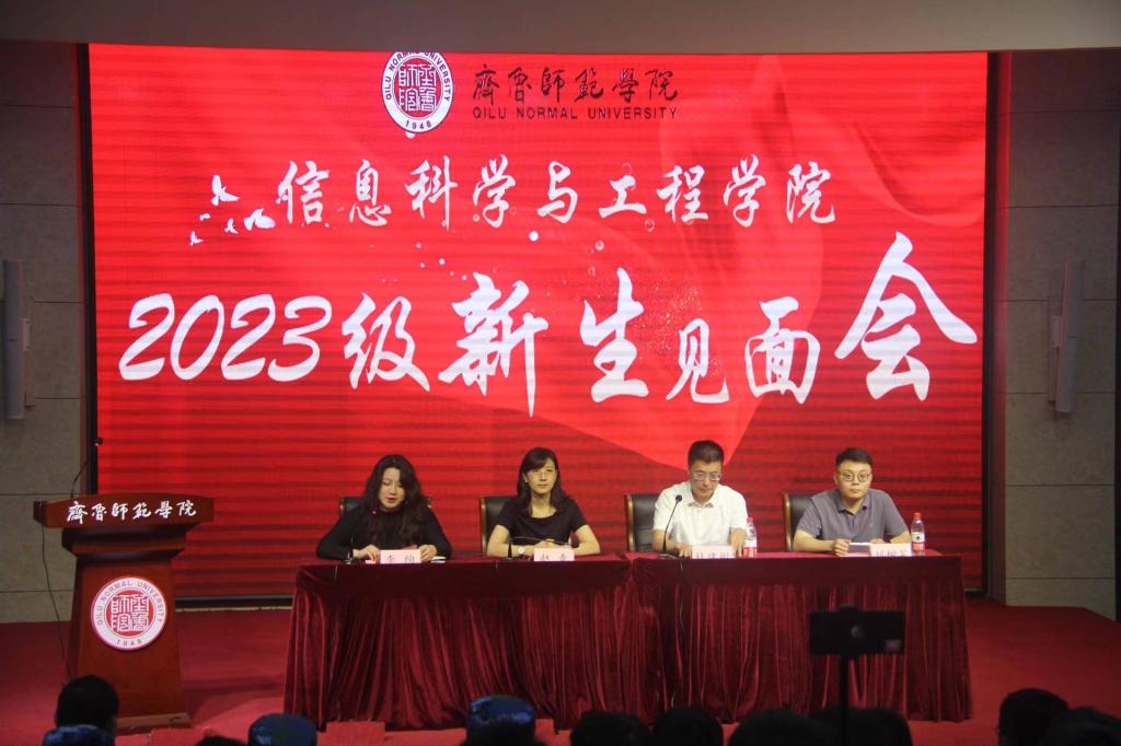 九月金风盛,恰是新征程。9月22日晚,信息科学与工程学院在第一学术报告厅召开2023级新生见面会暨开学第一课。学院党委书记赵青、院长杜建彬出席活动。会议由团总支书记李绚主持,辅导员、教师代表、2023级全体新生及家长以线下线上相结合方式同步参会。