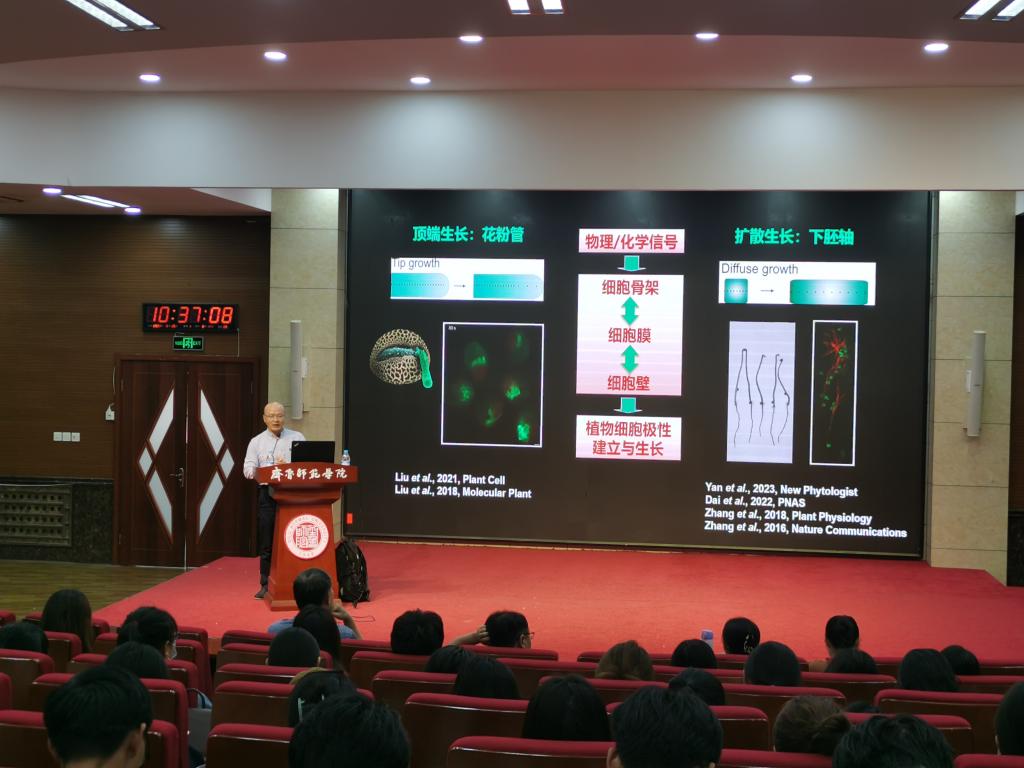 9月25日上午,应生命科学学院邀请,北京师范大学教授、博士生导师,细胞增殖与调控生物学教育部重点实验室副主任张毅为学校师生作题为“细胞骨架动态与细胞壁合成”的学术讲座,此次讲座系生命科学学院“细胞运输前沿论坛”第一讲。学院院长崔大勇、副院长段广有、部分教师、生物科学与生物信息学等专业的同学聆听讲座。讲座由李师鹏教授主持。