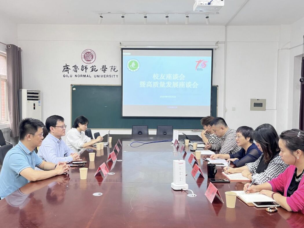 随后,校友们积极发言,分享目前的工作、学习、生活情况,对母校的精心培养表示衷心感谢,并就学院的发展积极交流、建言献策。党永保就英语师范生的实习、研习、见习工作,学生竞赛的校外专家指导,省级优质教育资源共享等方面积极建言献策;张相恒就中小学课外教材编写、英语出版物发行、教师集中教研培训等方面与学院交流意见;李龙水则代表济南新东方教育就学生的寒暑假实习实践活动开展、就业渠道拓展、教师比赛指导、大学生双创项目孵化等方面开展了交流。再回校园,师友再聚,座谈会现场气氛轻松融洽,师生相谈甚欢。