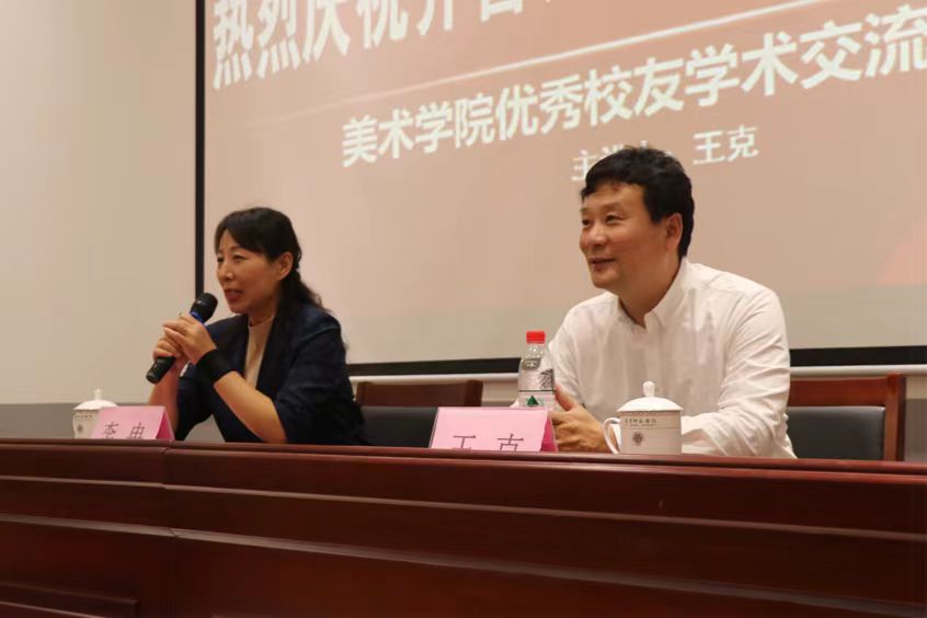 为进一步落实以学生为中心的教育理念,用优秀校友的典型事迹和学校人才培养成果教育鼓舞学生,10月10日下午,美术学院举行优秀校友报告会。1993级优秀校友、济南市文联副主席、民革十四届中央文化文史和学习委员会委员王克受邀主讲。美术学院副院长李冉主持会议,2023级全体本科生聆听报告。