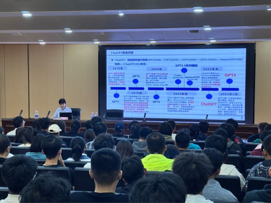 为营造学生学术创新氛围,提高学生的学习兴趣和学术创新参与率,10月19日,信息科学与工程学院“信智论坛”第二讲在章丘校区第二学术报告厅举行。山东省科学技术情报研究院党委委员、创新战略研究中心主任李潇研究员受邀作题为《ChatGPT为代表的人工智能技术对科技情报研究院的影响与启示》的学术报告。报告由学院科研秘书刘芬主持,相关专业师生现场聆听报告。