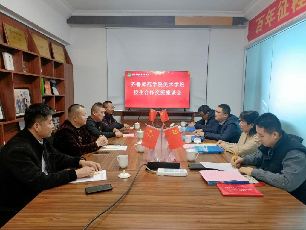在济南市物流发展促进会,双方举行了校企合作交流座谈会。济南市物流发展促进会秘书长、山东星光大道供应链管理有限公司董事长杜兆伟,济南市物流发展促进会工会主席、山东广汇供应链管理有限公司董事长张先海,济南市物流发展促进会理事、济南文文物流有限公司董事长王勇,济南市物流发展促进会理事、济南利盟物流有限公司董事长徐萌参加座谈。杜兆伟介绍了济南市物流发展促进会基本情况,辛源介绍了齐鲁师范学院基本情况和美术学院事业发展、学风建设、人才培养情况,李冉介绍了美术学院的师资队伍、教学科研建设等情况。双方与会人员围绕企业发展人才需求情况、业态发展对人才培养的新要求等进行交流和探讨,对提升学院人才培养与社会用人需求的契合度提出意见和建议。