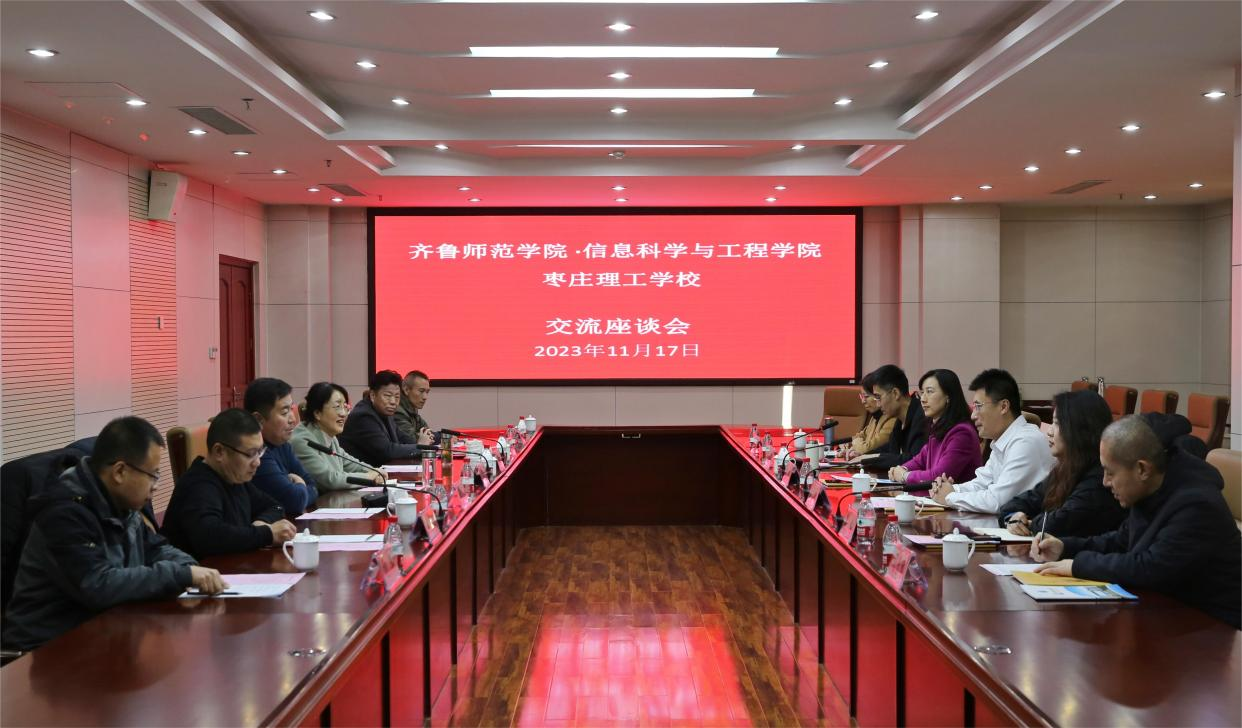 为深入调研了解中等职业教育师资需求,拓展职业本科教育,探索职普融通机制,近日,齐鲁师范学院信息科学与工程学院(人工智能学院)与枣庄理工学校举行交流合作座谈会及教学实践基地签约挂牌仪式。信息科学与工程学院(人工智能学院)党委书记赵青、院长杜建彬、团总支书记李绚、教师代表韩业红教授、闫乐林教授、枣庄市薛城区副区长周海燕、区教体局局长种法立、枣庄理工学校校长张飞龙参加座谈会。