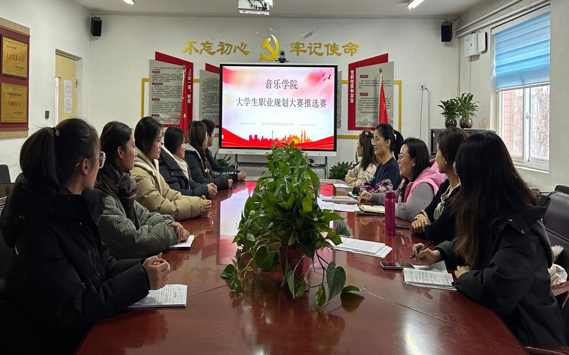 为贯彻落实党中央、国务院的决策部署,进一步提升音乐学院学生职业生涯教育和就业指导工作实效,增强大学生生涯规划意识,促进学生高质量就业。根据齐鲁师范学院第五届大学生职业规划大赛暨首届山东省大学生职业规划大赛校级选拔赛要求,12月1日,音乐学院举办了院级推选赛。音乐学院党委副书记姜晨、音乐学院团总支全体辅导员担任本次决赛评委。