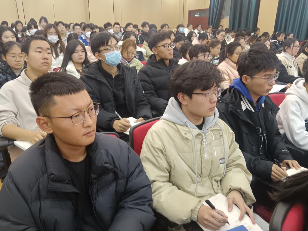 为教育引导学生合理规划生涯发展,树立正确的学习观、知行观,形成更加优良的学风,11月28日晚,马克思主义学院在章丘校区第二学术报告厅举行“见贤思齐、朋辈引领”榜样示范引领暨党委书记专题报告活动。马克思主义学院党委书记贾龙作题为《赓续传承、行稳致远,做新时代青马人才》的专题报告,学院党委副书记毛雯、团总支书记王雅文,学院学生党员、学生干部及2023级全体学生参加活动。