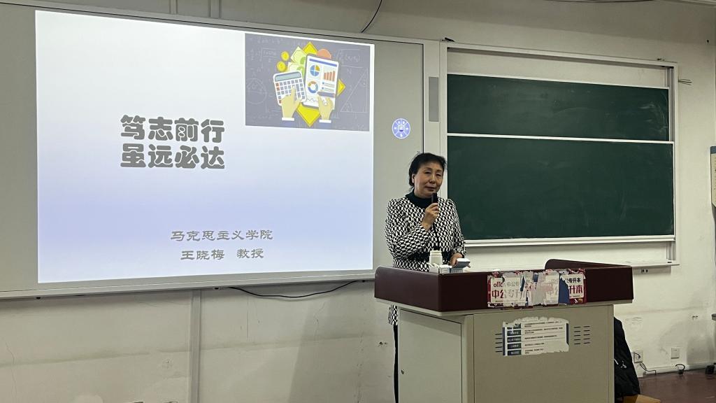 为全面提升人才培养质量,营造优良学风,助力学院高质量考研,12月5日晚,经济与管理学院在一教A405举行2025届考研动员辅导会议,邀请马克思主义学院王晓梅教授作辅导报告。报告会由带班辅导员殷大鹏主持,2021级本科班和2023级专升本本科班学生聆听报告。