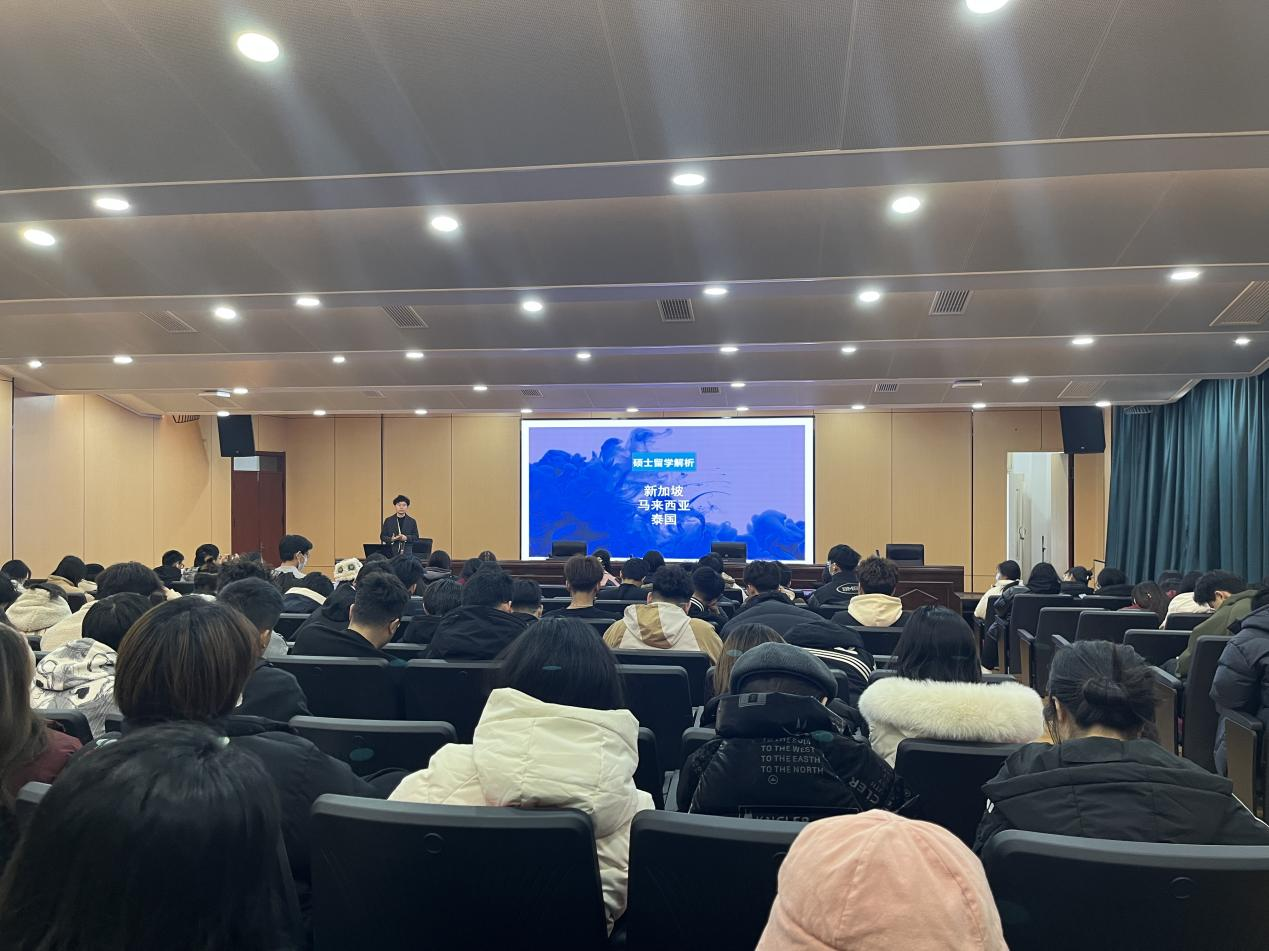 为帮助师院学子做好学业规划,拓宽升学深造渠道,更好地服务学生国际化发展需求,12月7日下午,国际交流与合作处、学生工作部(处)依托“志业大讲堂”联合举办高质量就业赋能——东南亚留学专题讲座。济南新知行出入境服务有限公司资深留学咨询专家赵胜男受邀主讲。讲座由国际交流与合作处处长何艳主持,100余名学生现场聆听。