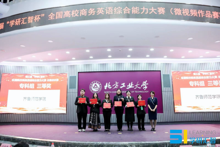 12月2日,2023“学研汇智杯”全国高校商务英语综合能力大赛(微视频作品赛项)全国总决赛圆满落幕。齐鲁师范学院外国语学院学生杨瑞青、牟启慧、刘宇欣、候奕彤、孙凤锦、左朕与来自全国各大高校选手同台竞技,斩获该赛事全国总决赛“三等奖”佳绩。