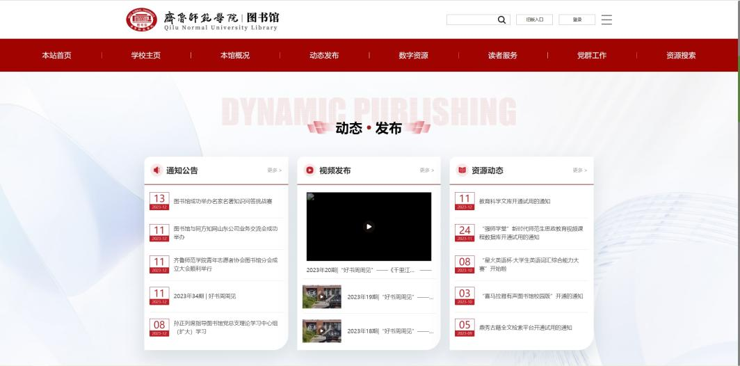 经过前期收集读者意见,精心调研论证,最终确立了以读者需求为中心,以师生友好体验为目标的新网站版面设计。新版网站采用整屏滚动的设计方式,突破常规图书馆网站设计模式,每一屏内容清晰明确、便于阅读;网站选取红色为主色,蓝色为点缀,整个页面更显大气;模块化的设计和适当的留白让读者在浏览网站的过程中,便于找到目标内容;新网站对移动端网站内容进行了深度优化,全面支持电脑和移动设备访问,为用户提供多渠道、全方位的浏览体验。