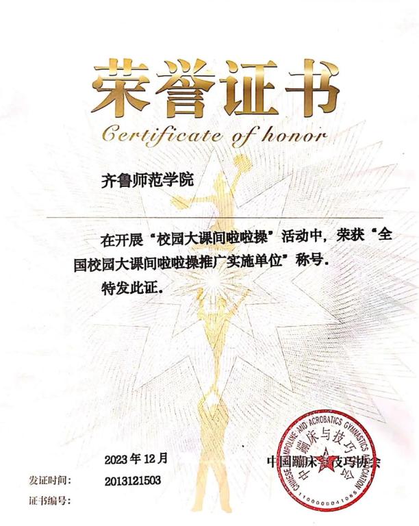 让我们共同祝贺齐鲁师范学院啦啦操队取得的优异成绩,感谢他们为校争光。体育学院将再接再厉,争取啦啦操运动再创佳绩,为师生体质健康作出更大贡献。