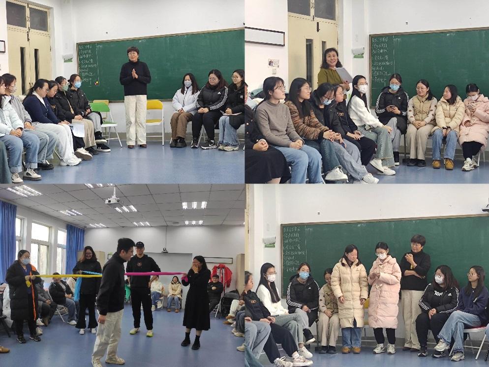 寒冬生暖意,微光抚人心。在考研的征程中,特别是在冲刺阶段,及时调整心态、保持积极良好状态显得尤为重要。学院邀请齐鲁师范学院教师教育学院原心理学教研室主任、心理学专业负责人苗军芙教授为考研学子开展心理疏导活动。苗军芙通过“进化论”“丝巾传力”“抽取心理图卡”等游戏帮助同学们树立信心、摆正心态、学会放松、缓解焦虑,协助考研学子进行考前心理调适,保持自信平和的心态。