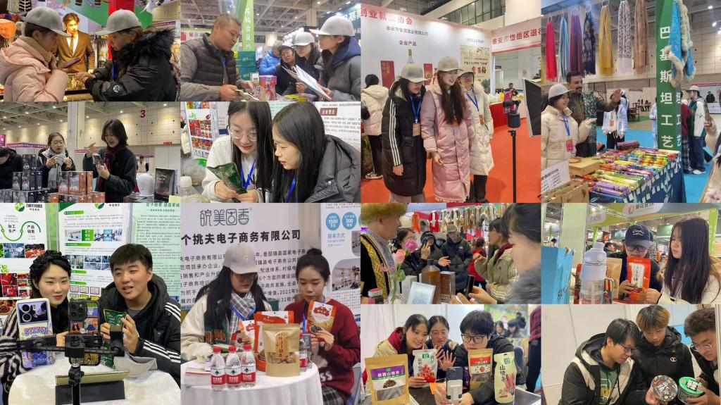 本届大会创新推出“展+赛”的模式,汇聚来自全国13个省份的700多家参会企业,另有俄罗斯、伊朗、巴基斯坦、阿富汗、巴西5个国家组团参展,带来了独具地域风情的特色商品。外国语学院商务英语专业学生积极参与了其中的直播带货活动,在真实的电商平台直播间上体验了电商主播的乐趣。
