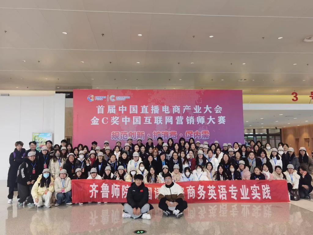 12月15日-16日,由中国电子商会、山东广播电视台、济南日报报业集团、半岛都市报社联合举办的首届中国直播电商产业大会在山东国际会展中心举行。外国语学院商务英语专业学生代表在商务英语教研室老师们带领下参加大会并开展电商专业直播实践活动。