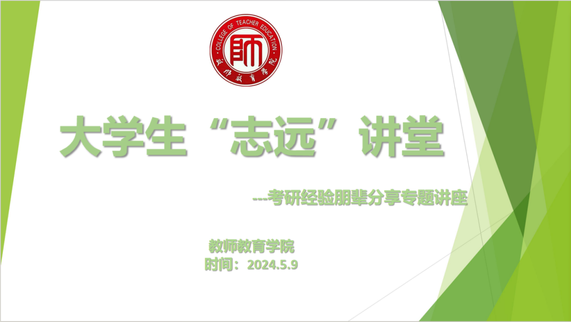 讲座伊始,李炜琛介绍了志远讲堂的意义,旨在以朋辈的力量影响学生发展,以榜样的力量带领广大青年追求进步,营造人人为师、人人分享、互相学习的校园氛围。他还向同学们介绍了2024届教师教育学院考研的具体情况,希望同学们都能借此机会认真学习,汲取经验,为己所用。