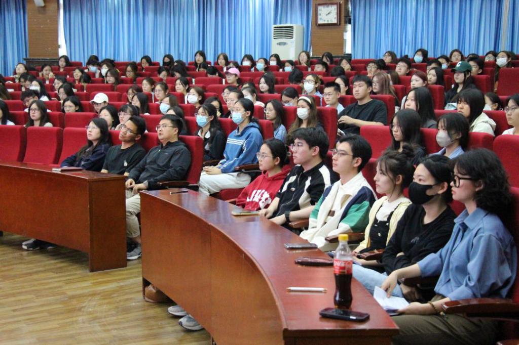 随后,5位在2024届考研中取得优异成绩的优秀学子依次上台进行经验分享。他们从考研的底层逻辑讲起,帮助同学们充分了解为什么要考研、如何考研以及考研的意义。5位同学根据自身的学习经历和实践,将如何择校、如何复习、如调整心态等重点问题依次进行经验介绍和细致分析,讲解透彻,直击痛点,逻辑清晰且幽默风趣。在场听会的同学们也全神贯注,紧跟讲述,随时记录,汲取所需。