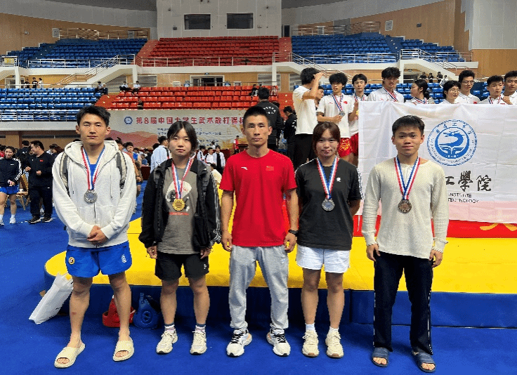 首次参加大学生国家级赛事,队员们不畏强手、沉着冷静、敢打敢拼、奋勇争先,取得累累硕果。张迈获女子甲A 57公斤冠军、程梦真获女子甲B 65公斤银牌、黄德建获男子甲B 70公斤银牌、万硕获男子甲A 60公斤铜牌。