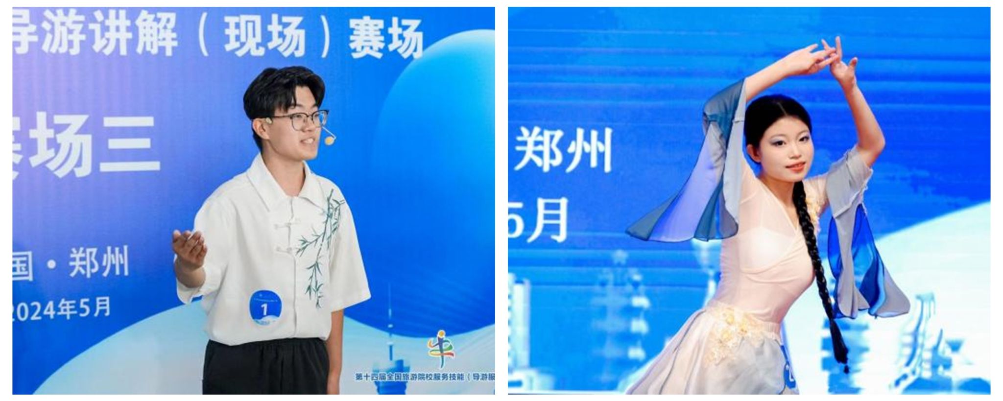 5月23日-26日,由文化和旅游部市场管理司、中国旅游协会指导,中国旅游协会旅游教育分会主办的第十四届全国旅游院校服务技能(导游服务)大赛在郑州举行。地理与旅游学院2022级旅游管理与服务教育专业李恒哲、张馨月同学获得高校组普通话导游服务三等奖。