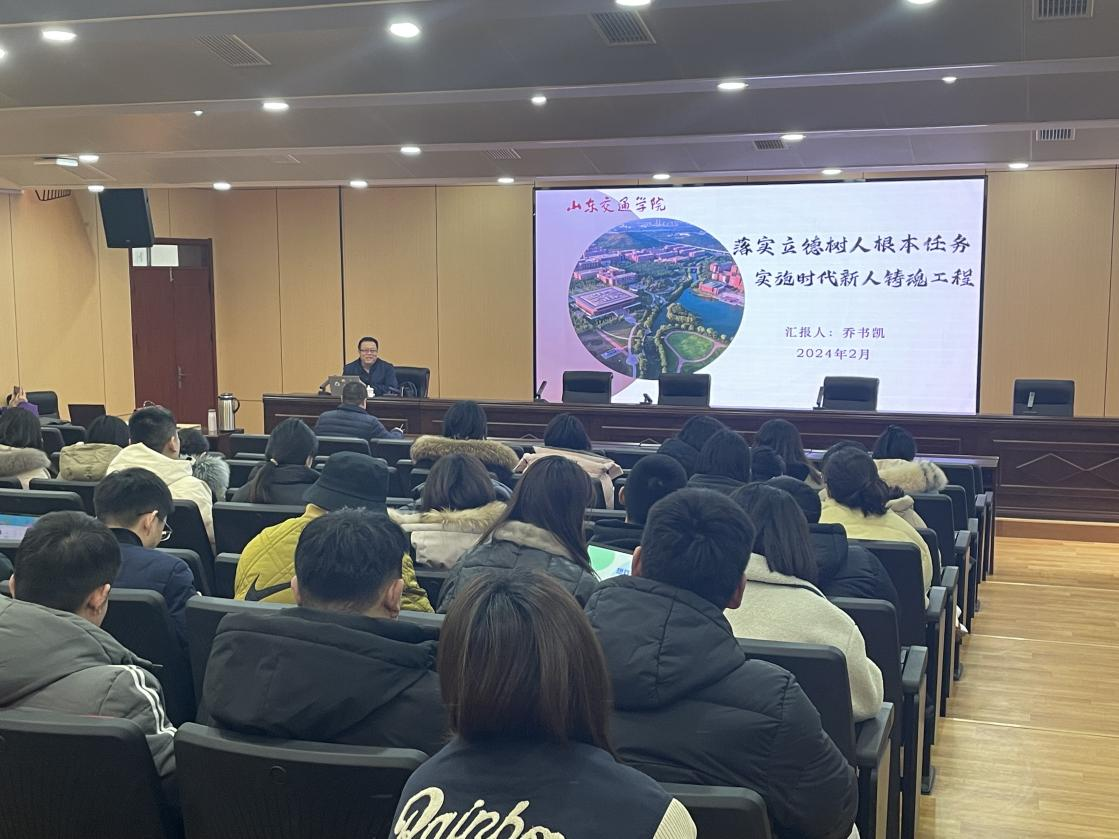 为深入学习贯彻习近平新时代中国特色社会主义思想,大力弘扬教育家精神,全面提升辅导员队伍的思想政治水平、专业素养和职业能力,2月29日下午,学生工作部(处)特邀山东交通学院辅导员发展中心主任乔书凯为辅导员队伍作《落实立德树人根本任务,实施时代新人铸魂工程》专题讲座,各学院党委副书记、团总支书记、副书记,全体辅导员现场聆听学习。