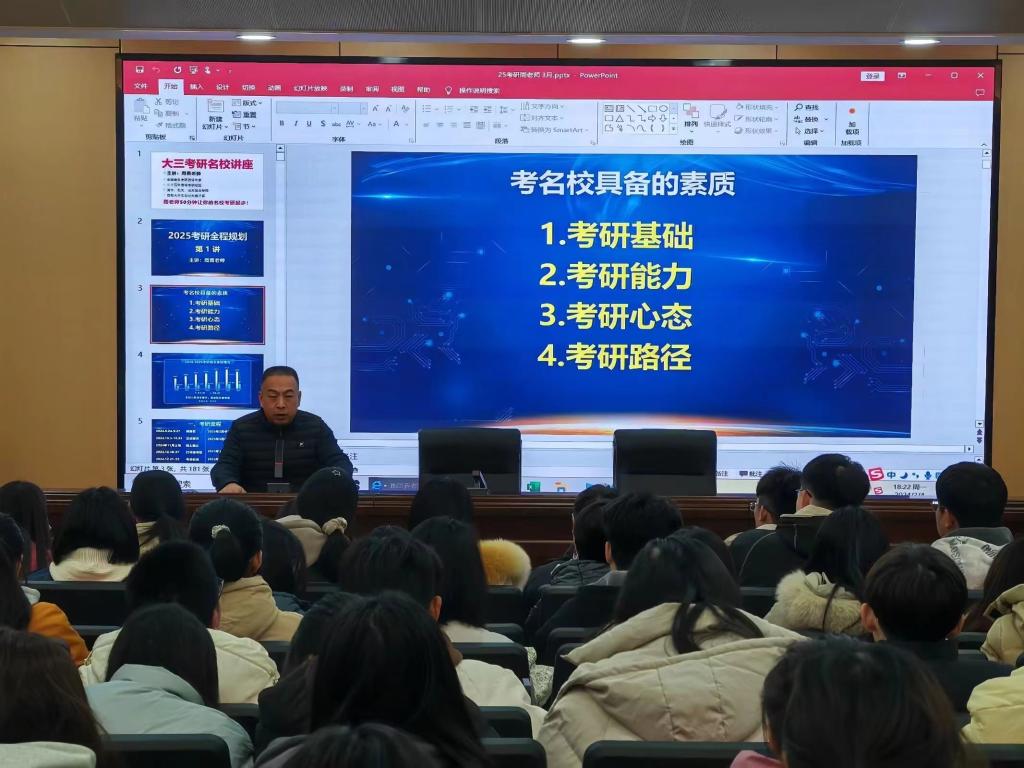 为营造良好的学习氛围与考研环境,帮助2025届毕业生尽早明确考研奋斗目标,提高考研规划能力,数学学院于3月4日晚召开了2025届毕业生考研报考指导专题讲座。会议由学院团总支书记李钰茜主持,北京大学职业规划导师周勇受邀主讲。