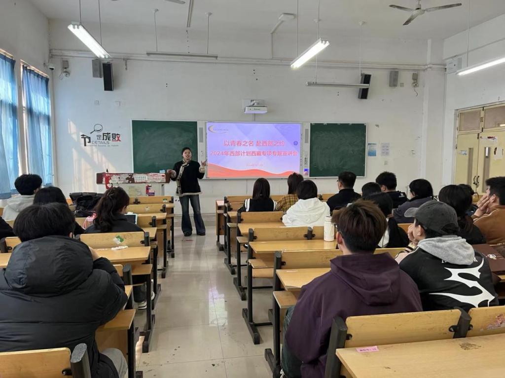宣讲会上,李绍倩讲述了在西藏的生活和工作经历,分享了自己的志愿服务感受,介绍了西部计划西藏专项的国家和地方优惠政策、项目基本情况、服务内容、报名条件及流程、选拔标准、志愿者服务管理等方面事项。她还解答了同学们对于西部计划西藏专项的相关疑问,鼓励毕业生到西部去,到祖国最需要的地方建功立业,为西部地区的建设发展奉献青春、智慧和力量。