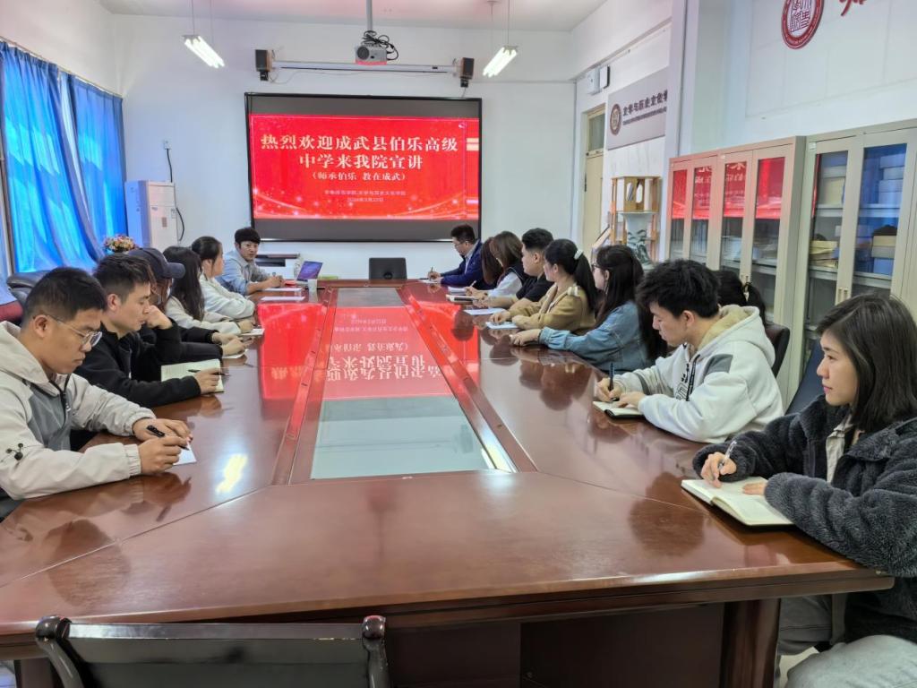 为贯彻教育部促就业攻坚行动工作要求,落实学校2024届毕业生就业工作推进会精神,全力推动应届毕业生实现更高质量和更充分就业,3月22日下午,文学与历史文化学院邀请成武县伯乐高级中学到校举行宣讲活动,学院党委书记胡义忠、党委副书记闫莉莉、各毕业班辅导员、部分2024届毕业生参加会议。