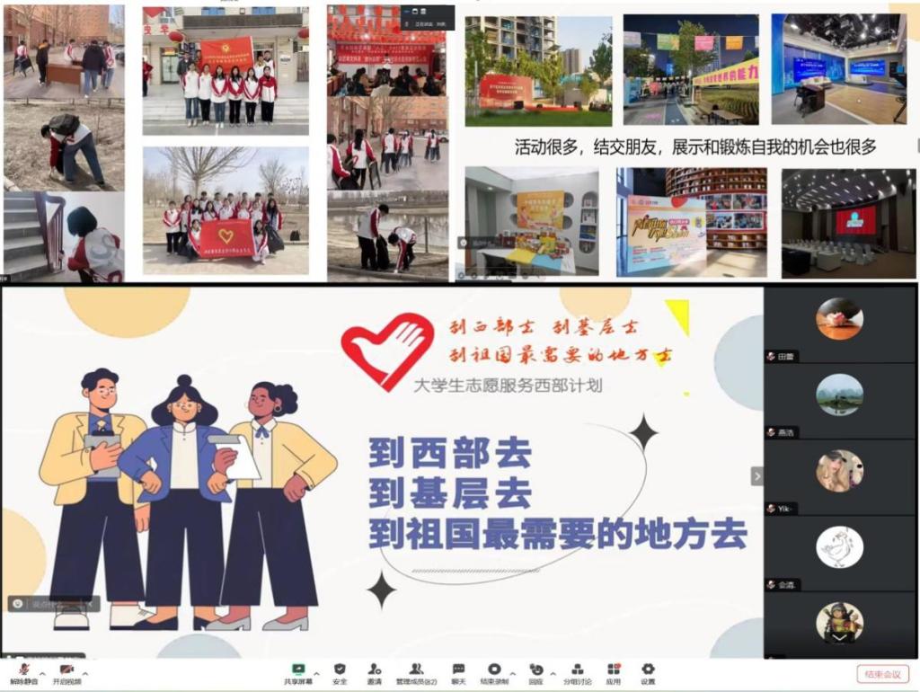 会上,学院团总支副书记田蕾对2024届毕业生踊跃参加西部计划的热情给予了高度赞赏,勉励同学们笃行不怠、不负青春,在祖国需要的地方施展才华、展现抱负。她向与会同学介绍了西部计划的服务内容、相关政策、报名条件、选拔流程以及学院历年参加西部计划同学的发展情况。同时,结合学院毕业生专业,就乡村教育、服务乡村建设、健康乡村、基层青年工作、服务新疆等5个专题作了重点介绍。