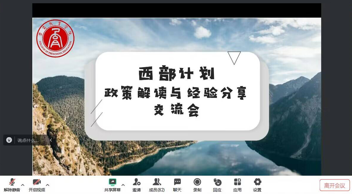 为进一步推动2024届毕业生就业工作和大学生志愿服务,鼓励号召毕业生积极参加“西部计划”项目,扎根到祖国最需要的地方,为国家西部地区经济社会发展贡献青春力量,近日,学前教育学院举办西部计划与山东计划政策解读及经验交流会。会议线上线下同步进行,100余名毕业生参加,毕业生辅导员李文主持。