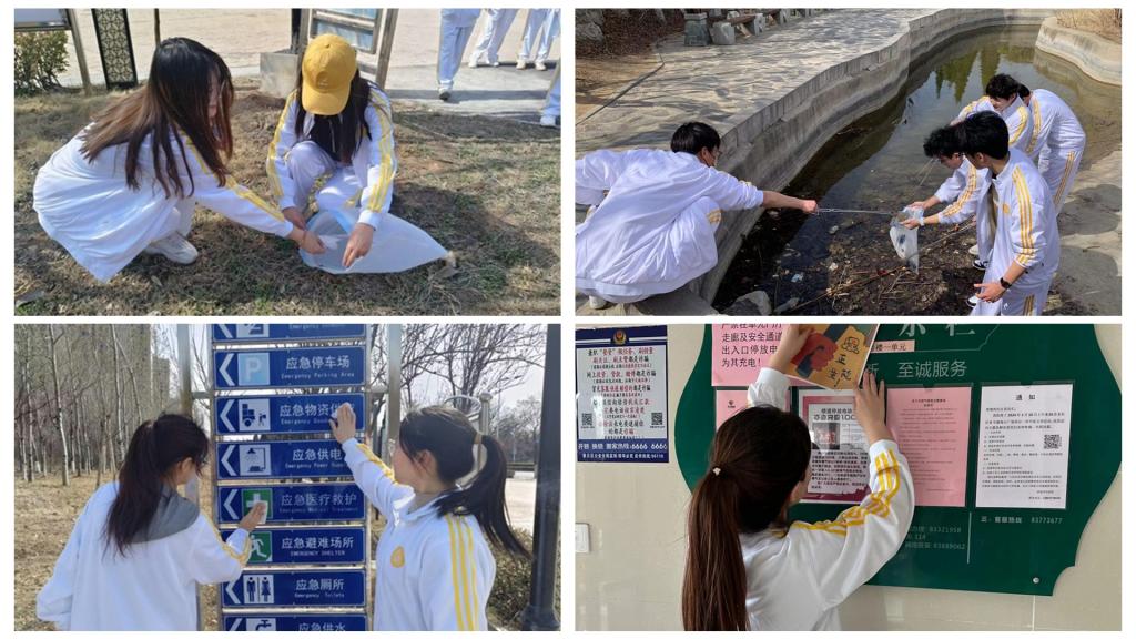 教师教育学院2023级小学教育专业转段5班团支部前往东山公园,发扬“不怕苦不怕累”的精神,打扫落叶,清理池塘,并将环保知识实践到东山公园;2023级小学教育转段4班团支部前往章丘三山裕村,参观学习章丘第一支抗日武装纪念馆,庄重擦拭广场纪念碑,维护三山裕村优美自然景观,在传承红色精神的同时,践行守护青山的文明精神;2023级小学教育公费师范班团支部深入居民社区,粘贴传单,清理街道垃圾,维护小区整洁,提醒社区居民电动车上楼的风险,普及消防知识,从小事践行雷锋行为,传承雷锋精神。