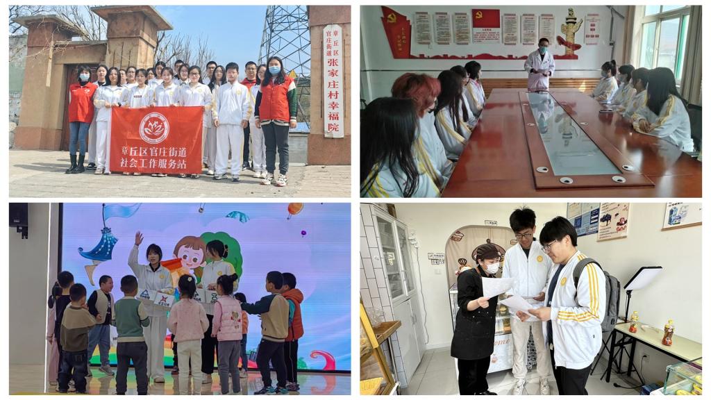 社会工作专业学生发挥专业优势,开展“长者互助食堂”志愿服务项目,开展帮助孤寡老人、关爱留守儿童、公益理发、磨刀、反诈等活动,提升社区居民的生活满意度和幸福感;2023级小学教育转段本科4班团支部在济南市槐荫区美里湖中心幼儿园开展劳动教育,以劳动实践育祖国青苗;2023级小学教育转段2班团支部联合双山医院开展志愿活动,以己之初心护生命花开;2023级小学教育转段3班团支部深入社区宣传光盘行动,以勤俭养德传中华美德。