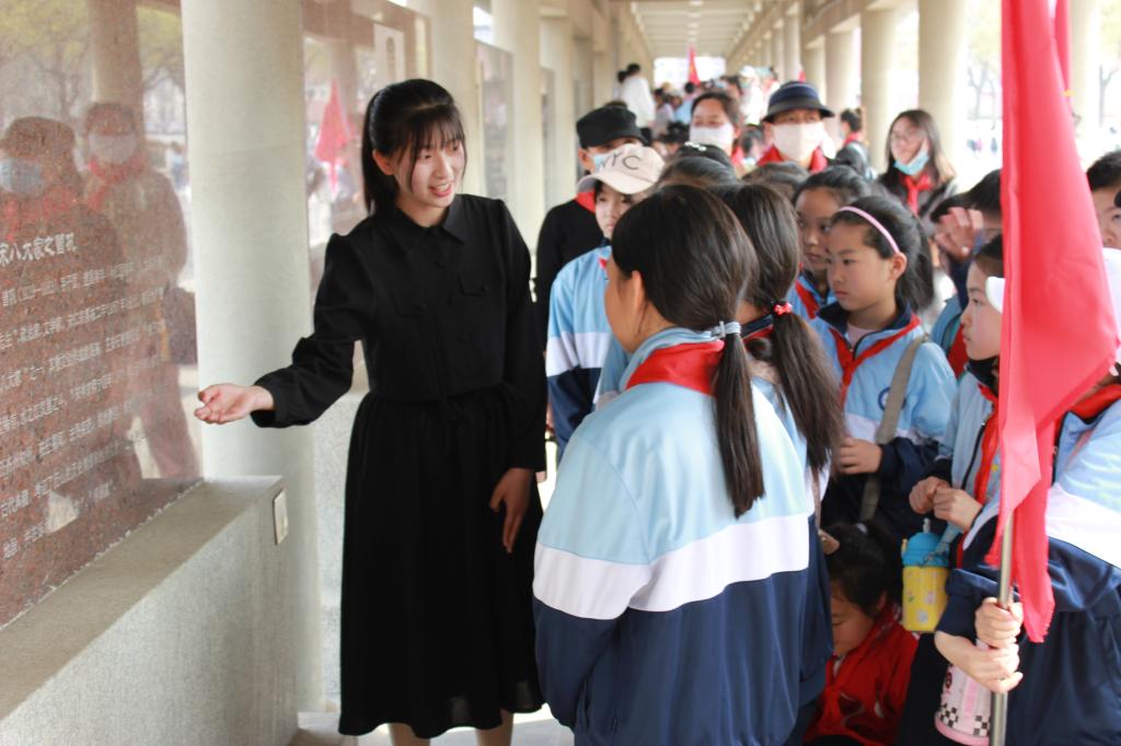 4月1日下午,齐鲁师范学院附属小学400余名师生、家长代表到学校进行研学。为充分展现本校丰富的齐鲁文化底蕴以及对培养君子品格的重视,文学与历史文化学院金声解说团为大家进行了齐鲁文化长廊的全程讲解。