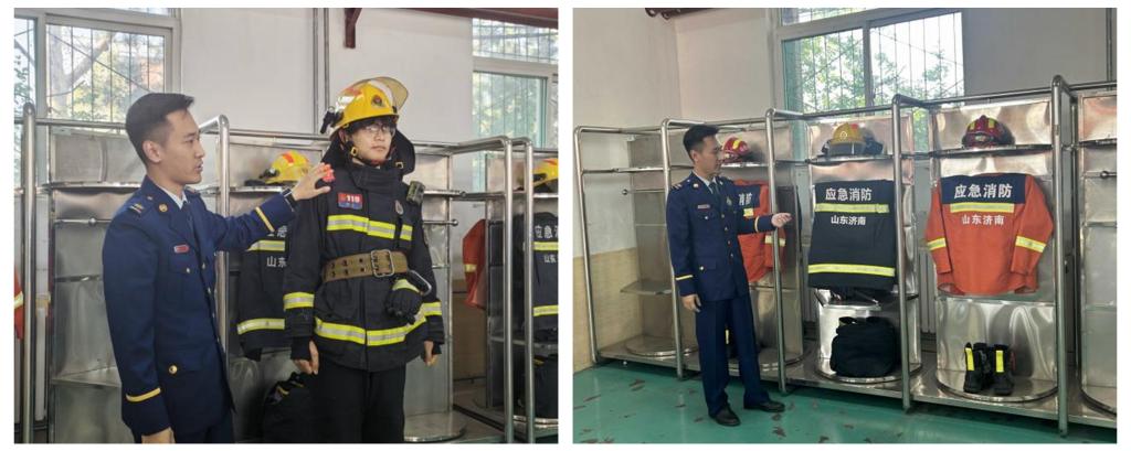 消防站阴泽跃班长向学生们介绍了消防站的历史背景及英雄事迹,带领学生们亲身体验了“沉重”的消防服,登上消防车,亲手操作了部分消防器械。除此之外,在消防站战士的教导下,学生们还学会了3种绳结的系法,举行了绳结PK赛,并进行了高空绳索速降体验。整个过程内容丰富、充实,学生们也在实践中体会到了消防工作的伟大与不易。