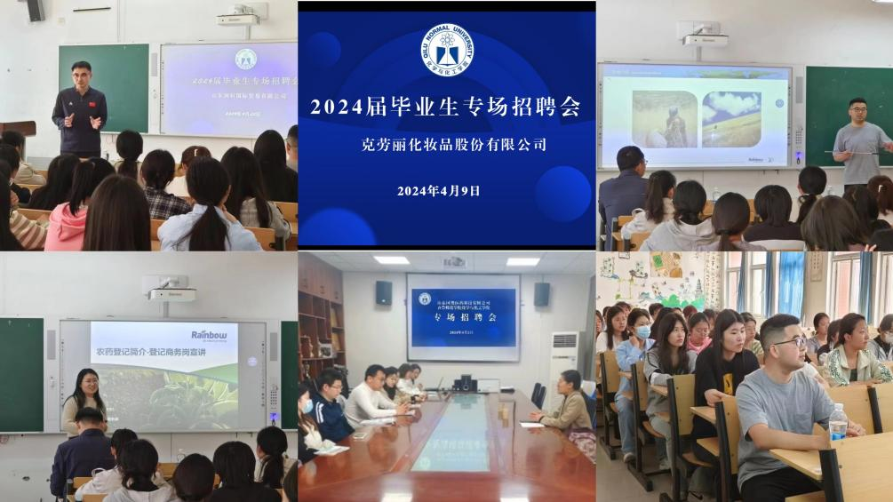 为落实学校关于毕业生就业工作的相关要求,扎实推进2024届毕业生就业工作,助力帮扶毕业生拓宽就业渠道,实现高效、精准、高质量就业,4月份,化学与化工学院召开专场招聘活动三场,分别邀请克劳丽化妆品股份有限公司(苏州)(以下简称“克劳丽”)、山东润丰化工股份有限公司(以下简称“润丰化工”)、山东山东国茂医药科技有限公司(以下简称“国贸医药”)宣讲。企业代表、校友代表、学院领导及相关专业负责人、毕业班辅导员及2024届部分本专科毕业生参加活动。